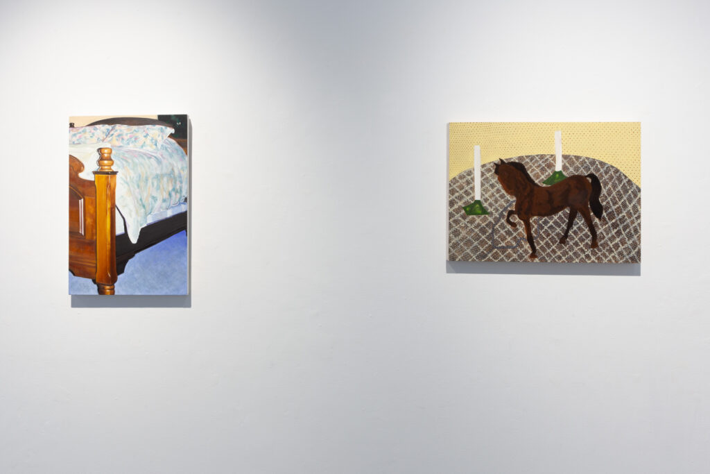 Five painters—Ben Cromien, Jake Santos, Ciara Premi, Laaya Tabei, and Danielle Vincent—uniquely position themselves in the new wave of contemporary art. Their works, distinctive in terms of practice, process, and visual appearance, represent courageous experimentation and aesthetic assertion. Diverse in content and form survives a notion of something to achieve; dynamic and attractive, unserious yet critical for our moment. They set the standard as a reference to budding aesthetics and to what has come before. References seen in the fabrics of content, medium and scale collectively remain aesthetic choices that support a reflection of our contemporary moment. Functioning is akin to our bodies’ connective tissues.