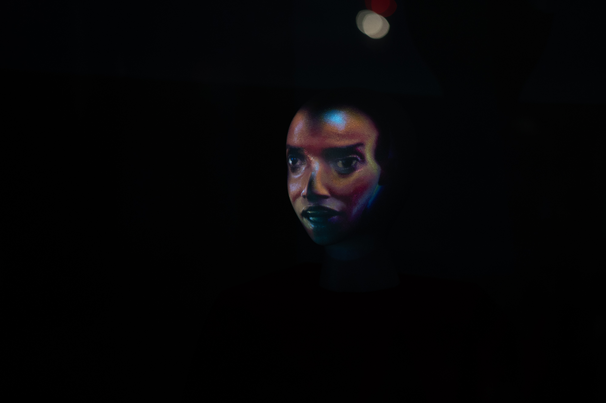 Conceptualized by Kim Ninkuru, These Are My Reparations is a sci-fi*, multi-media installation that directly addresses the way in which Black feminine people are taken, used and distorted for mass consumption. This work uses a hybrid of film, sculpture, sound, and online interactive media to tell the story of Honey, a Black woman, who is abducted by “The Company”, a corporate entity built to reproduce sound and visual content for the purposes of social control. Taking place in a future where live entertainment doesn’t exist, Honey is forced to sell her image and music to be used by an AI robot named RadioHead, which is accessed by the rich elite.