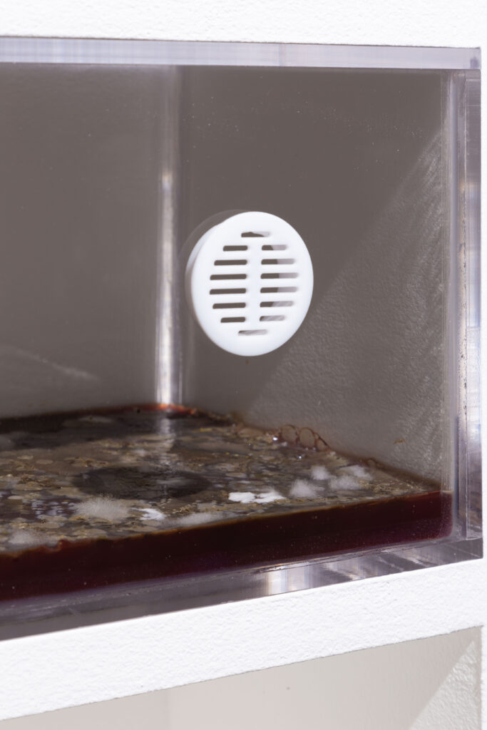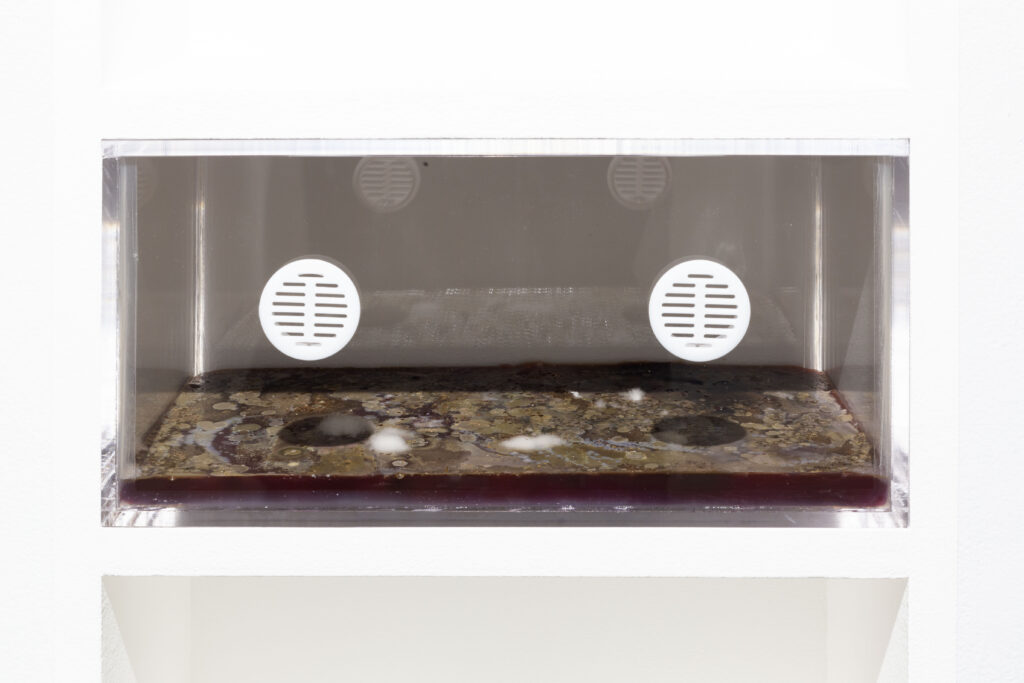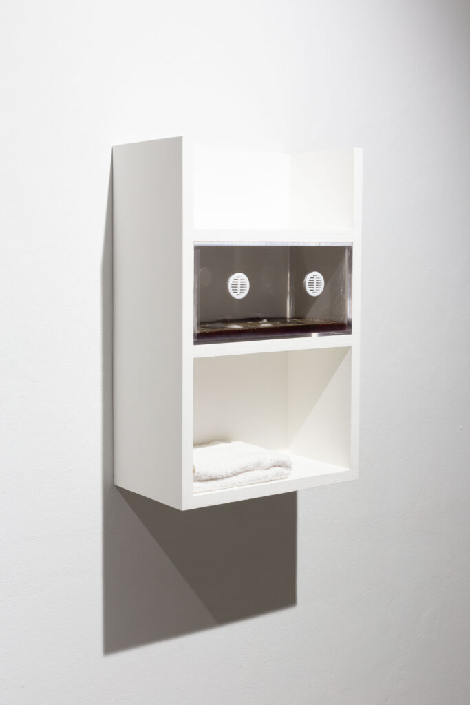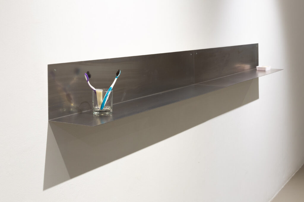 illuminate dreams of attaining a subjectivity that can be made discernible to itself; a coherent self to be maintained and optimized. Structuring rhythms of consumption and loss, absorption and expulsion, tenderness and revulsion, the ostensibly private space of the bathroom unfurls as a site of ruptures, exposing hidden infrastructures of discipline and control complacent in the maintenance of everyday life.