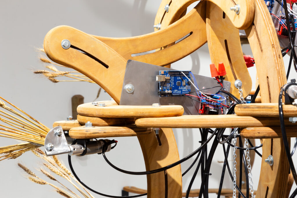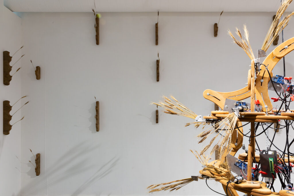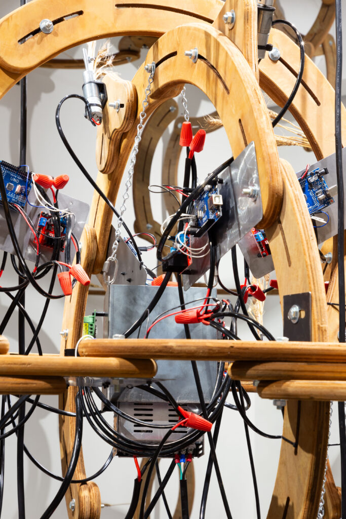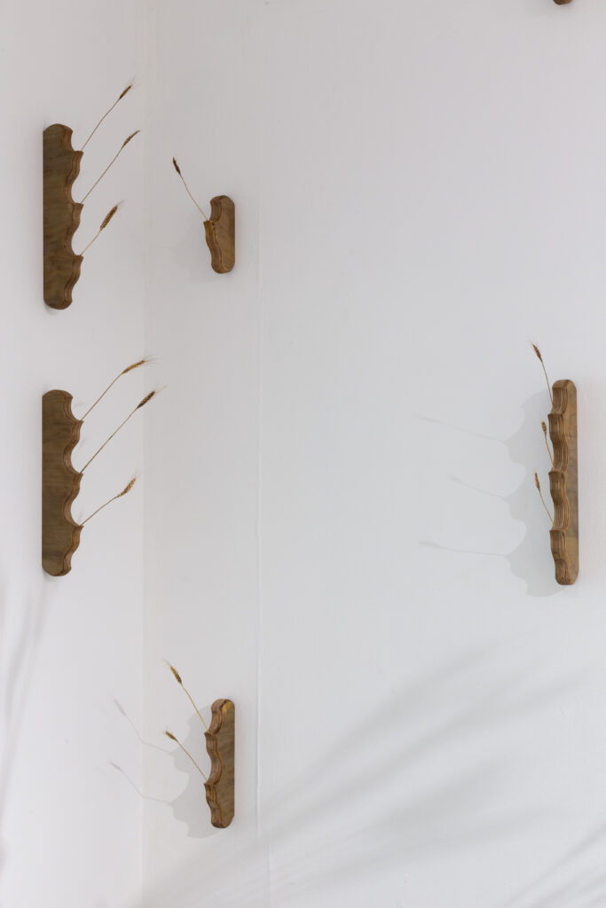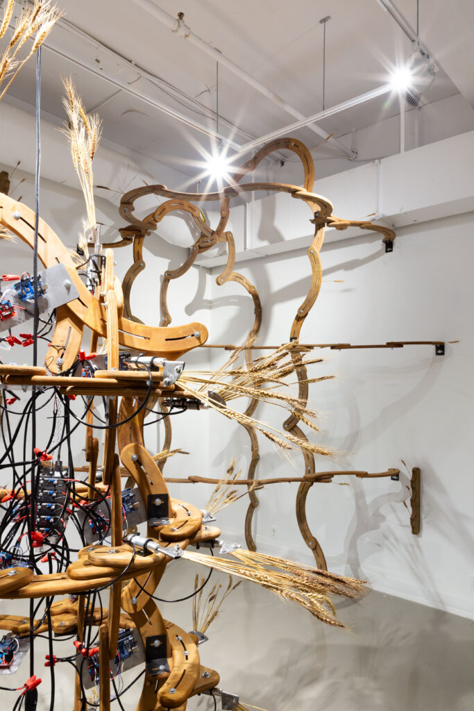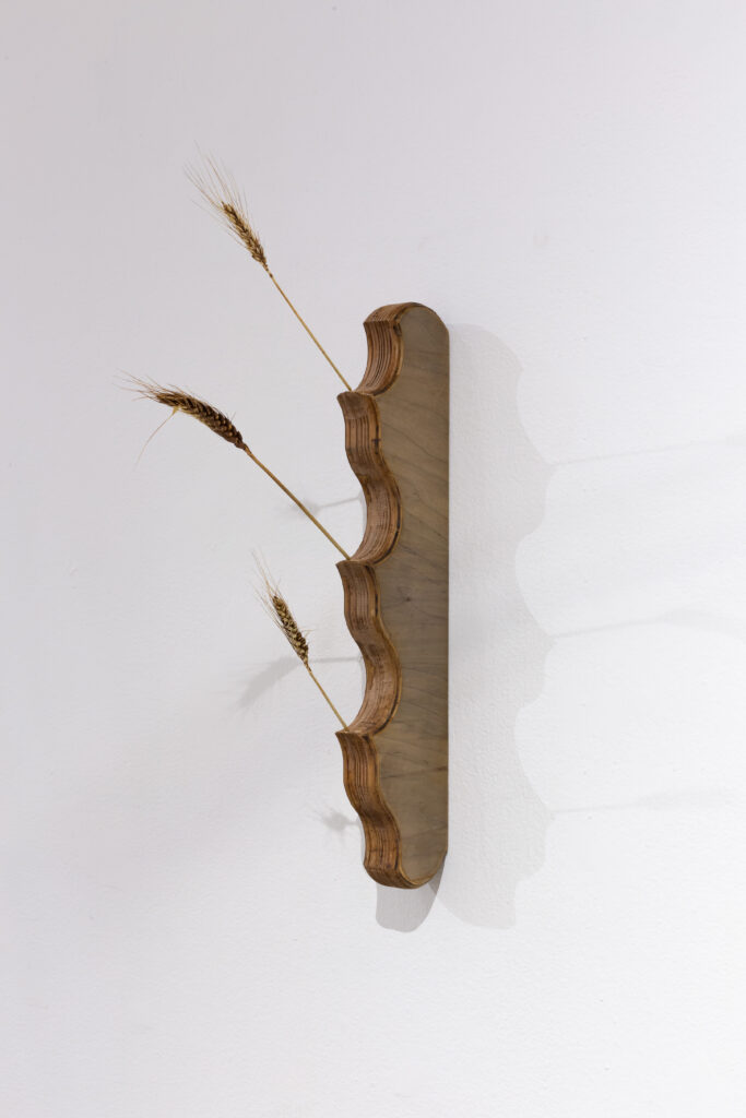 Lamprey is a sculptural installation that engages proprioception, affect, and the philosophical notion of persistence over time. Composed of lattice plywood forms and delicate organic elements, the work holds quiet tension within its structure—offering space for absences, and the potential for change. Drawing on ideas of unfolding through temporal parts, Lamprey progresses through gestures that resist immediacy, inviting viewers into a suspended engagement with material and motion. Treated surfaces appear rusted, muted, and softly deteriorated—material states that exist in a continuous process of transformation.