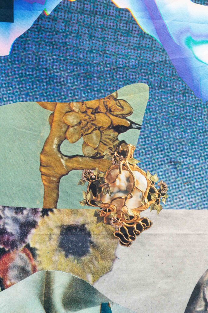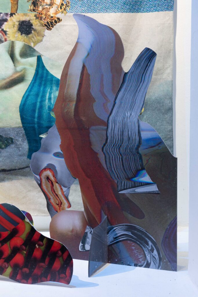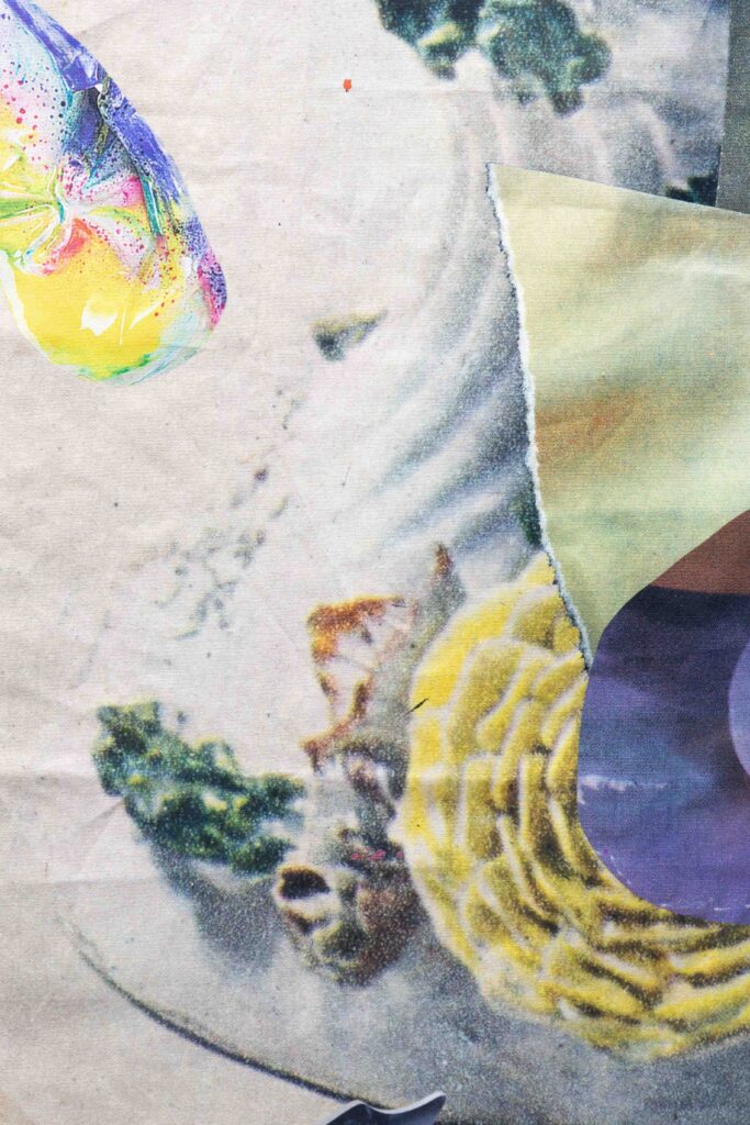 The artwork visualizes a simulated version of nature – like a mirage, surpassing the natural world itself, fabricated as though a theatrical stage. The nature that we often see in advertising – supercharged, extra juicy and plump, too good to be true. The artwork will blend the natural and the artificial, creating a surreal space where the two realms collapse into one another. Organic forms melt into synthetic patterns, blurring boundaries and questioning what is real. The concept draws inspiration from Jean Baudrillard’s theory of 𝘚𝘪𝘮𝘶𝘭𝘢𝘤𝘳𝘢 𝘢𝘯𝘥 𝘚𝘪𝘮𝘶𝘭𝘢𝘵𝘪𝘰𝘯, exploring the intersection between authenticity and its artificial representation. The artwork, constructed from collaged and repurposed materials—old magazines, torn and reimagined—takes the form of a sprawling landscape. From a distance, it evokes the serenity of nature, yet a closer examination reveals a hidden world.