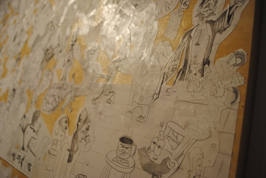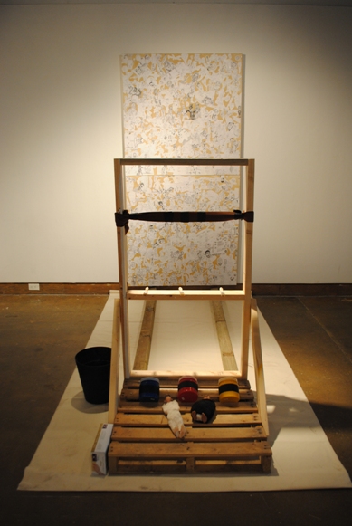 MM: Originally the idea was to make a catapult that launched sculptures into the wall but it has evolved into a slingshot that launches it – there were a few technical problems with the catapult but the slingshot will do the trick. I made some caricature figures out of rubber that will be launched at canvas that will be mounted on the wall. This will allow people the opportunity to get their hands on the art and thus affect the final product of the work. Whoever wants to play can mess around and leave their mark on it.
