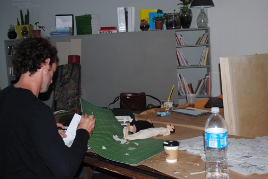 MM: Dissecting every sketchbook I have and taking out all of the pictures and collaging them onto here (the canvas that people will launch the sculptures at). This is going to become a very temporal piece because it’s going to change every time someone else comes and every time somebody launches something, it will essentially erase a page or a drawing. I’m a little sad…