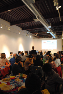 Xpace hosted FEAST 04 this past weekend where guests gathered to hear out artist proposals for micro-funding while dining on some fantastic vegetarian food. Zach Pearl won the vote to develop his website Wrecking Ball TO. For the student grant, Melissa Luk took the prize to develop her comics newspaper.